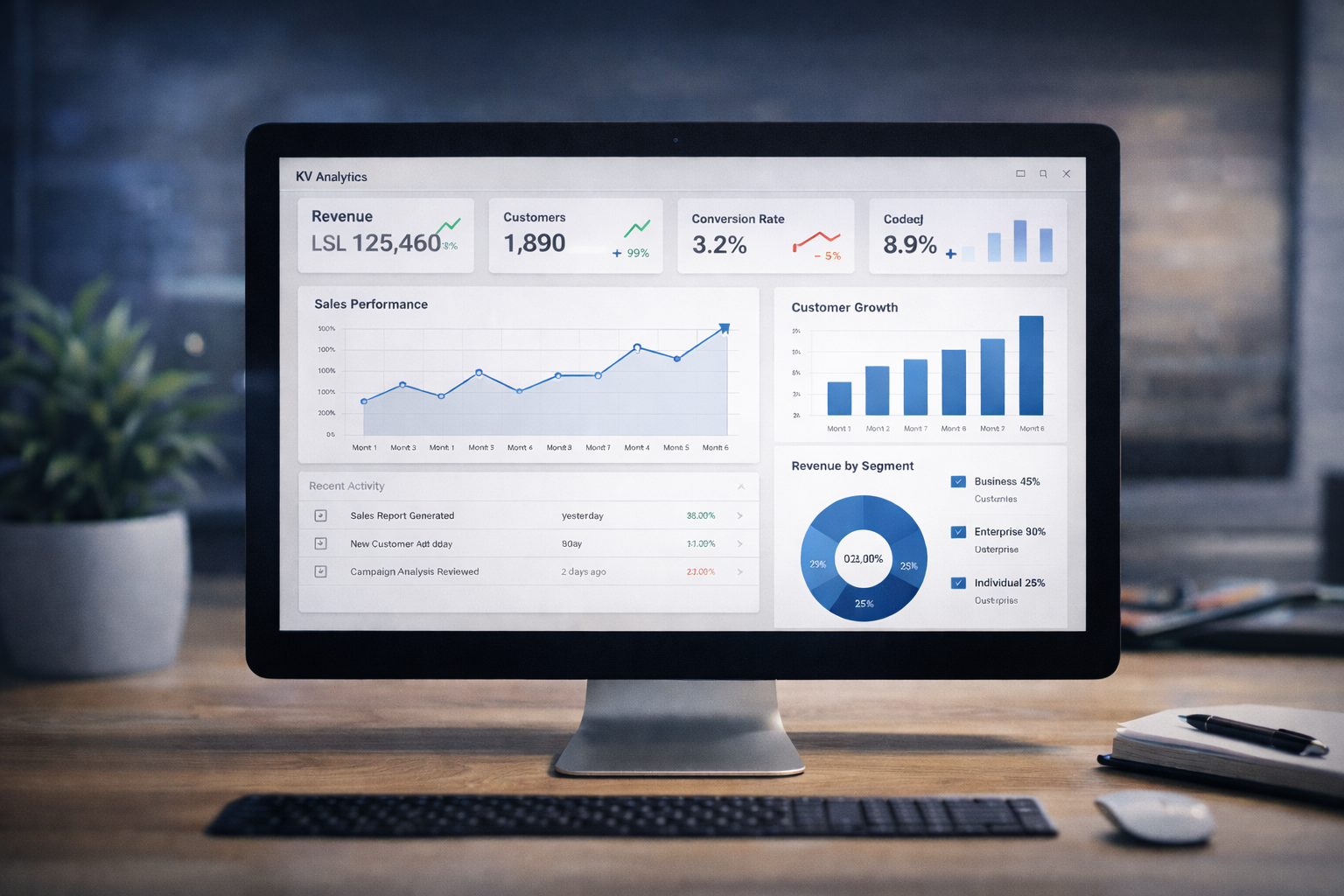 We design interactive dashboards that present your key business metrics in ways that are easy to understand at a glance. These dashboards update automatically with your latest data, so you always have current information to guide your decisions without waiting for manual reports or digging through spreadsheets.